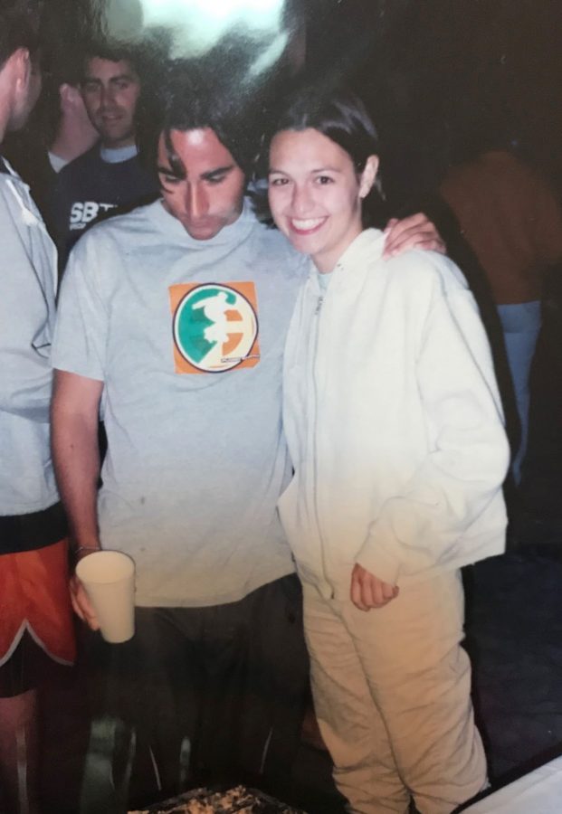 “Not a pro snowboarder but here I am at the San Diego Warped Tour in 1999 with Mark Hoppus from Blink 182.”