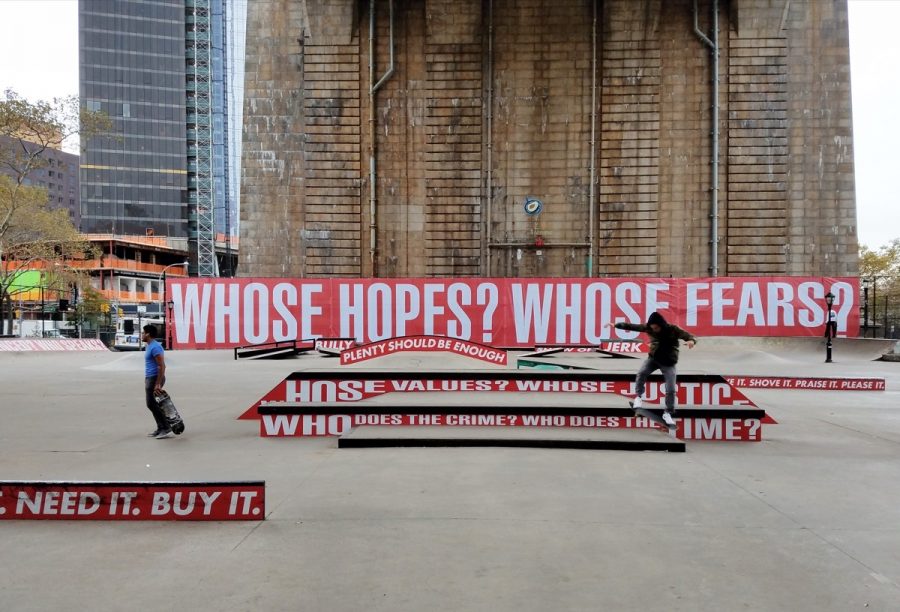 Click to ARTNEWS for the art industry’s take on Barbara Kruger rebranding a skate park as part of Performa17